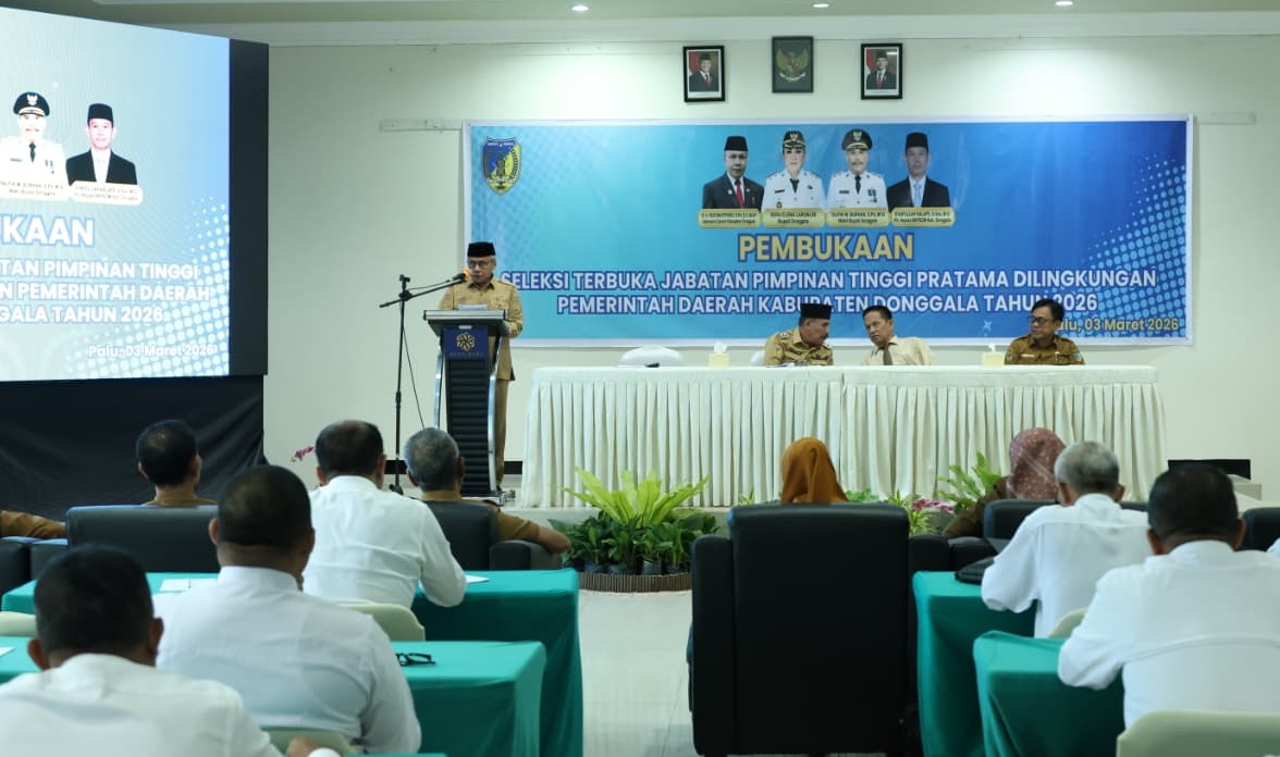 NUSSA.CO. – Donggala, Bupati Donggala, Vera Elena Laruni, yang diwakili oleh Wakil Bupati Taufik M. Burhan, secara resmi membuka pelaksanaan Seleksi Terbuka Jabatan Pimpinan Tinggi (JPT) Pratama Tahun 2026 di Hotel Rama, Palu. Dengan ditunjuknya 24 peserta dari total 30 pendaftar yang memenuhi syarat administrasi, pemerintah daerah berkomitmen untuk menjamin pengisian jabatan pimpinan tinggi dilakukan secara transparan dan kompetitif berdasarkan prinsip sistem merit.