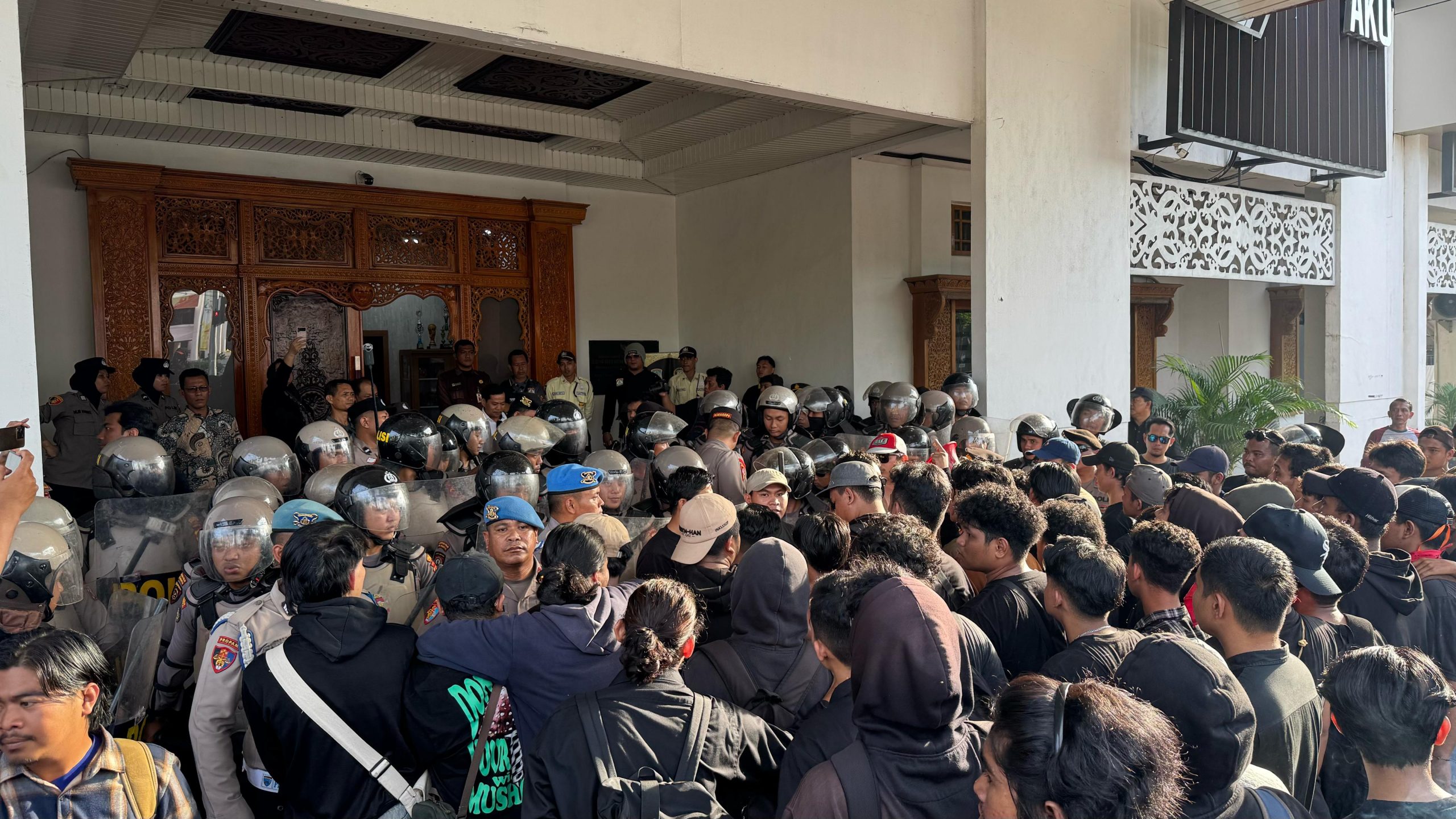 Simon juga mengingatkan agar aksi tetap berlangsung secara damai dan kondusif agar pesan yang ingin disampaikan dapat diterima dengan baik oleh semua pihak. Aksi mahasiswa sempat memanas ketika sebagian peserta mencoba memasuki gedung DPRD. Namun, upaya tersebut segera dicegah oleh petugas keamanan yang berjaga di lokasi. Meski begitu, mahasiswa tetap bersikeras menuntut pemerintah untuk meninjau ulang kebijakan efisiensi anggaran yang mereka nilai merugikan rakyat. (Adv)