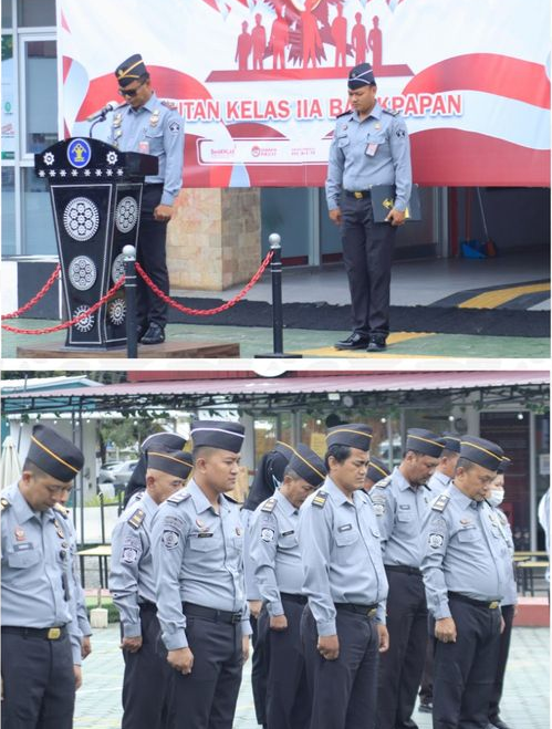 Kepala Rutan Kelas IIA Balikpapan, Agus Salim, bertindak sebagai Inspektur Upacara, didampingi Kepala Kesatuan Pengamanan Rutan (Ka. KPR) Luby Lukman Zakaria sebagai Perwira Upacara, serta Yulindra Eko Permadi sebagai Komandan Upacara. Suasana upacara berlangsung penuh khidmat, dihadiri oleh seluruh pejabat struktural, staf pelaksana, dan petugas pengamanan rutan.