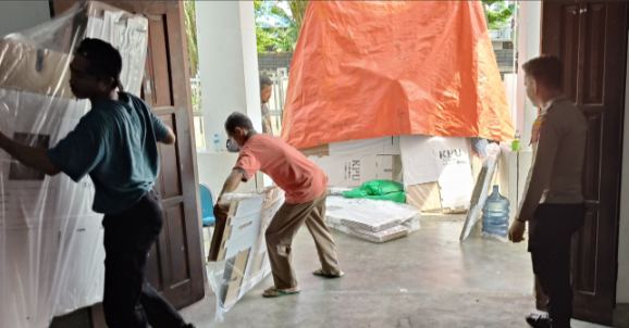 Setibanya di Kantor KPU, logistik diterima oleh staf KPU Kota Bontang, Lilik Sumari, S.E., dan M. Gazali. Sebanyak 112 box, masing-masing berisi lima kotak suara, disimpan dengan aman di Gudang Logistik KPU Kota Bontang.